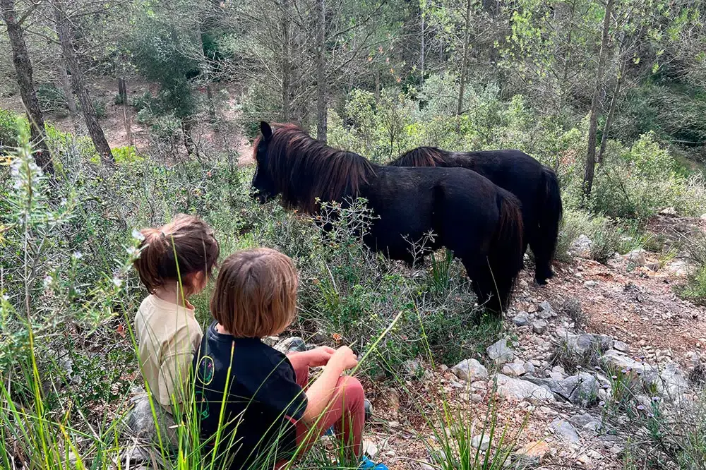 Een ochtend midden in de natuur om te leren over het belang van de aanwezigheid van vrije paarden in Garraf Park voor biodiversiteit en brandpreventie.
