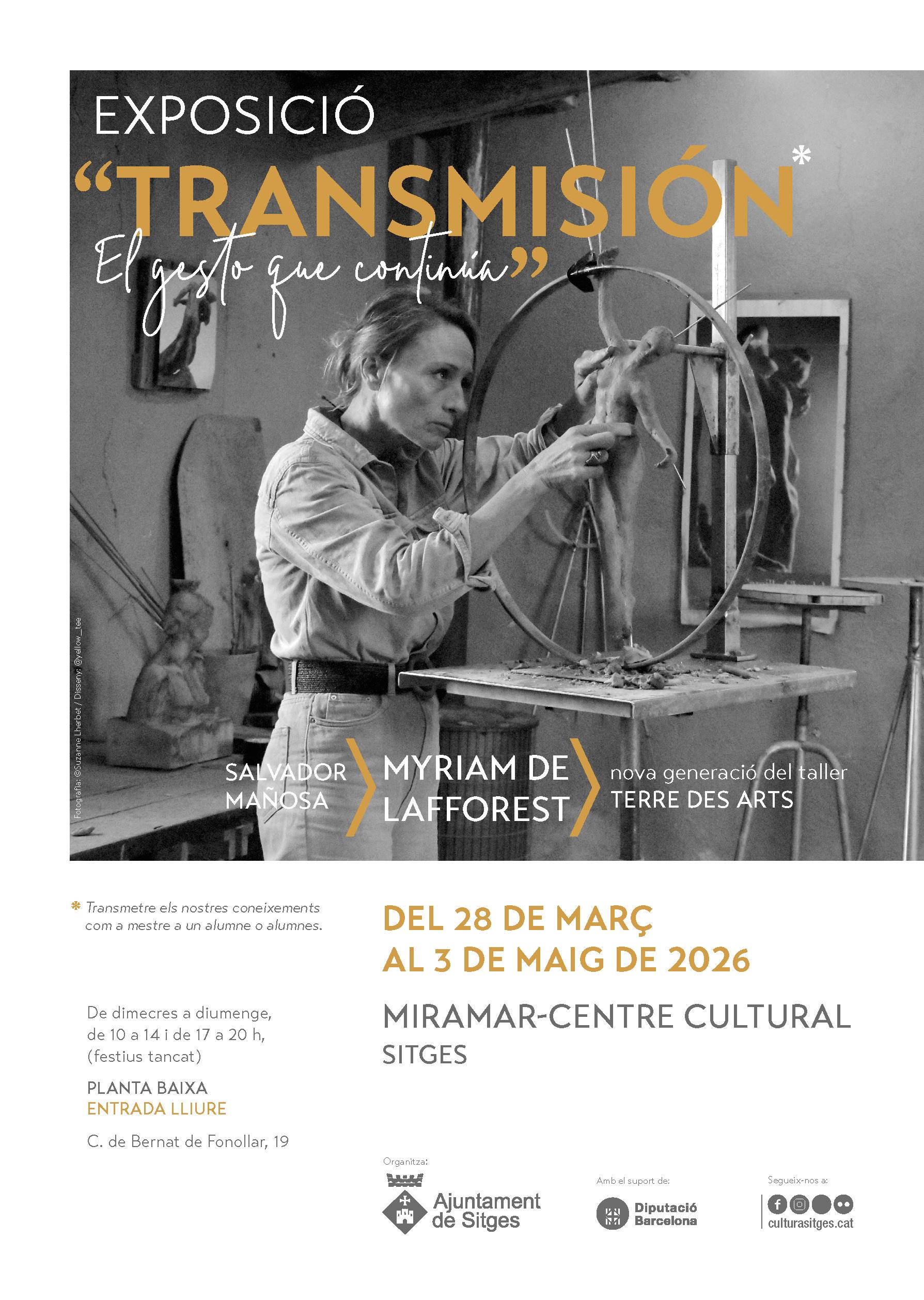 Transmisión – Esculturas compartidas onderzoekt hoe sculptuurkennis wordt doorgegeven over drie generaties: het werk van meester Salvador Mañosa, dat van Myriam de Lafforest en dat van de mensen met wie zij in de werkplaats werkt. Weg van de academie, is de overdracht gebaseerd op dialoog, observatie en gedeelde praktijk. Het resultaat zijn werken die persoonlijke trajecten en een collectieve ervaring van creatie en vriendschap weerspiegelen. Een tentoonstelling over leren door samen te creëren over gedeelde tijd.